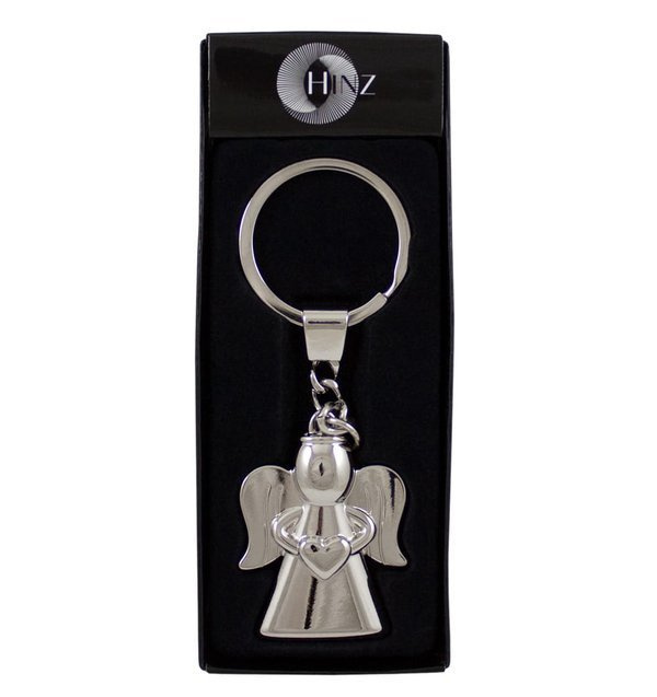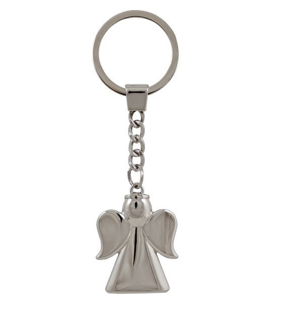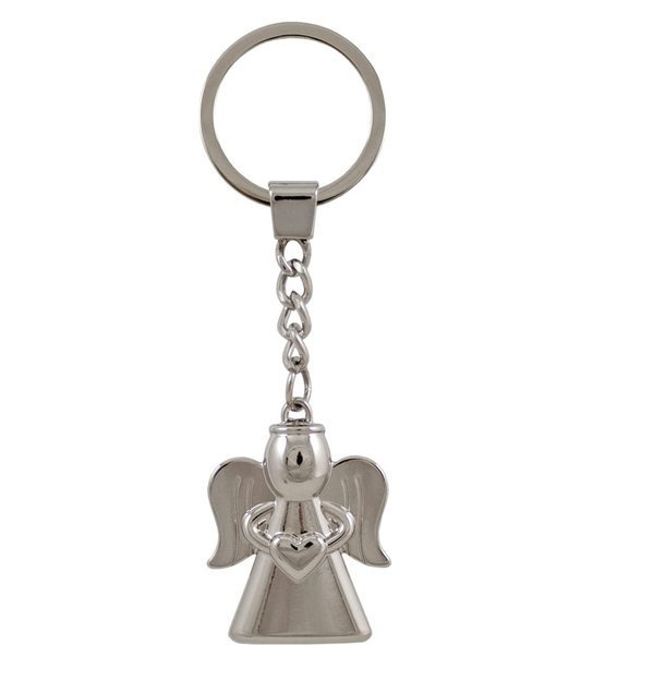 Brelok w kształcie aniołka, wykonany z metalu. Długość breloka 11,5 cm, wielkość anioła 4,4 cm. Brelok pakowany w ozdobne czarne flokowane wewnątrz pudełeczko.