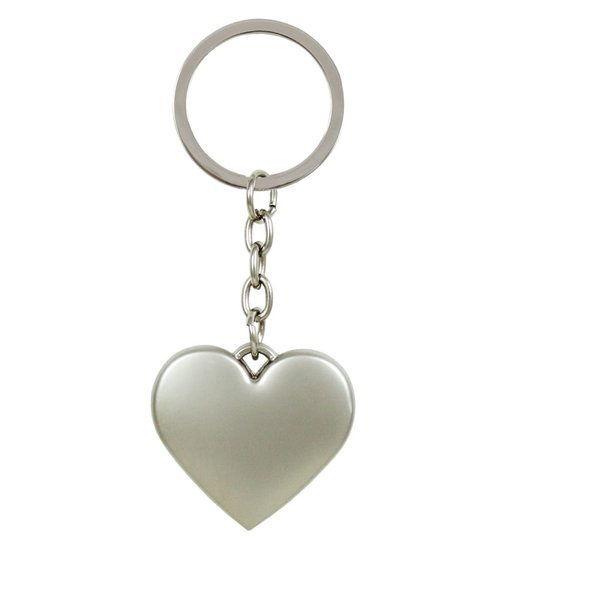 Brelok w kształcie serduszka wykonany z metalu, wykończony matowo. Długość breloka 9,5 cm. Długośc serduszka: 3,5 cm. Brelok pakowany w ozdobne, czarne, flokowane wewnątrz pudełeczko.