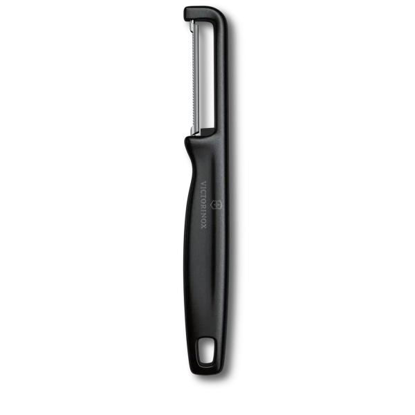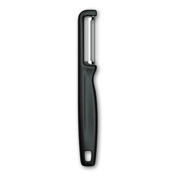• Wykonana w Szwajcarii i nadająca się do mycia w zmywarce obieraczka z ząbkowanym, wytrzymałym ostrzem o długiej żywotności